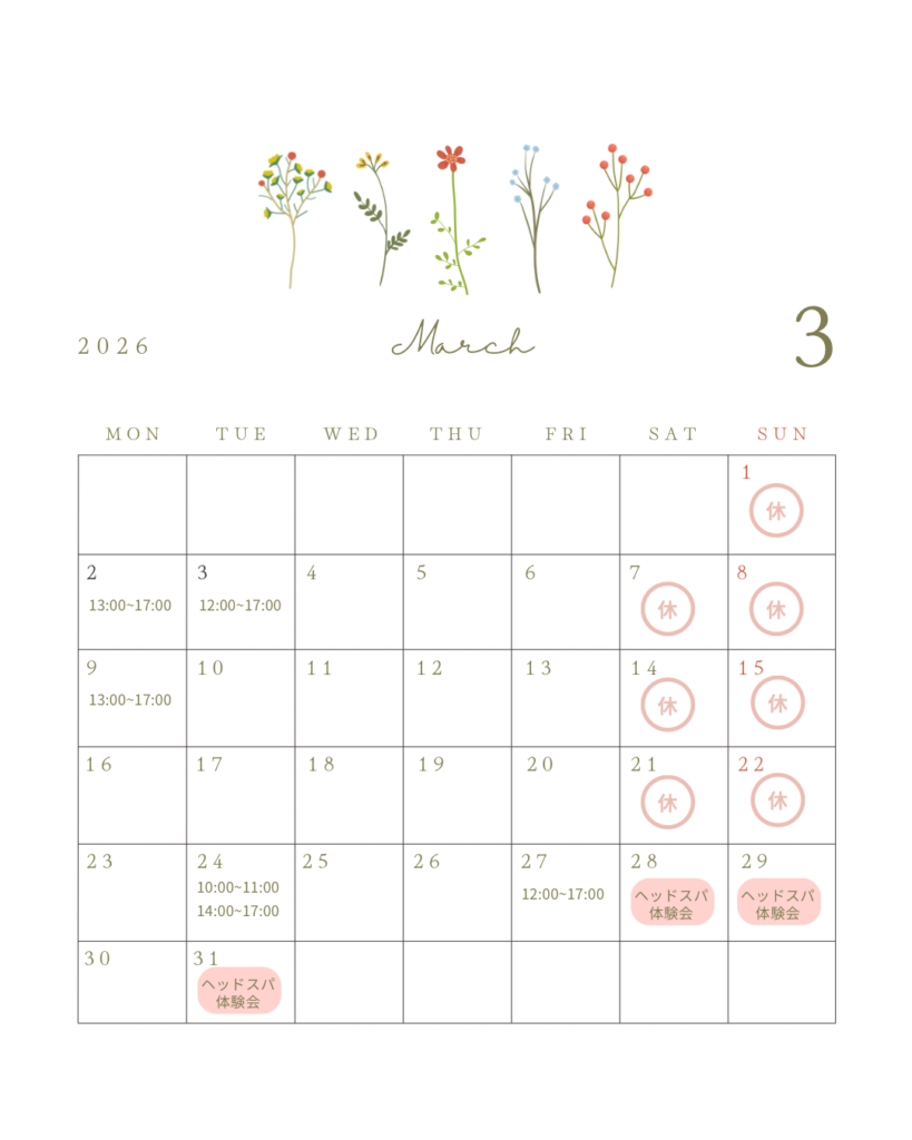 3月はヘッドスパスクールでのヘッドスパ体験会をしていますので、もしご興味のある方は